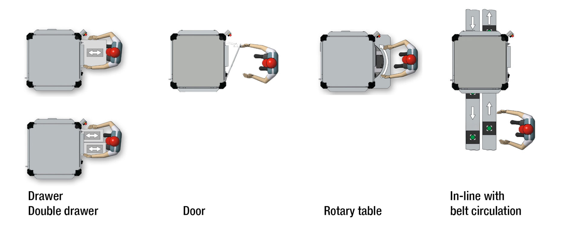 - Pendulum drawers (single or double), motor-driven